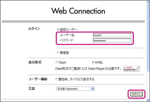 ユーザー認証が成功すると、Web Connectionを操作できます。