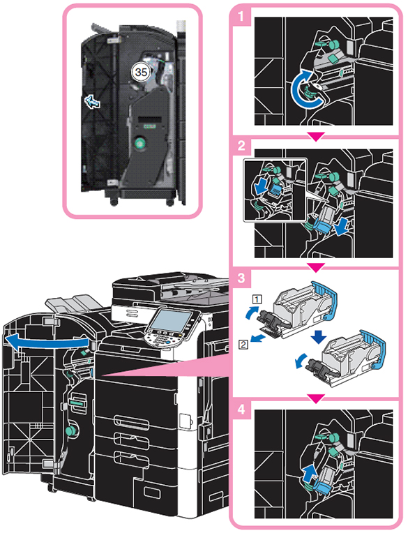 けがをする恐れがありますので、ステープルの針づまり処理にはご注意ください。