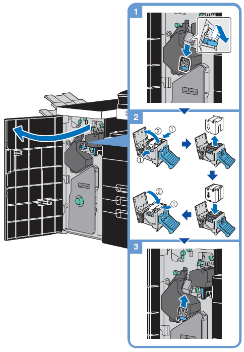 フィニッシャーFS-526のステープルカートリッジの交換方法を教えてください