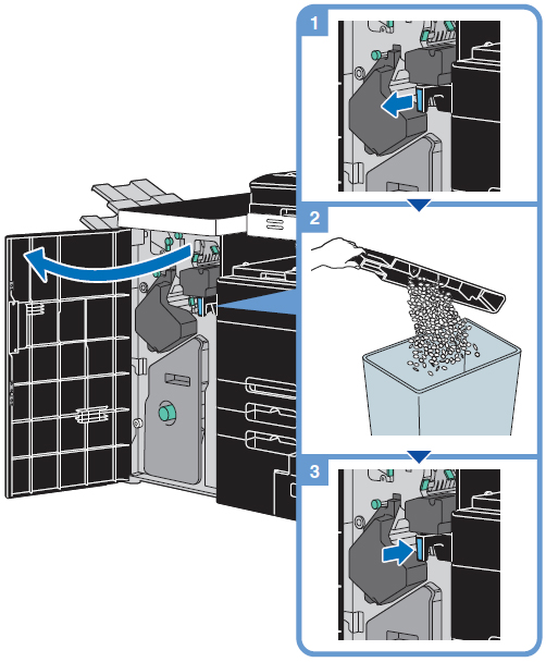 下図の手順に従ってくず入れを外し、中のくずを処理してください。