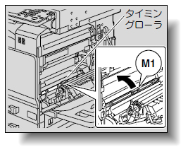 用紙の先端がタイミングローラ部にある場合は、内部カバー【M1】を開いて詰まった用紙を取り除きます。
