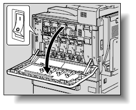 主電源スイッチは、本機の前ドアを開くと左側の中央に付いています。