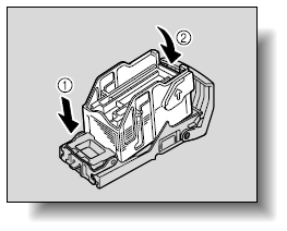 ステープルホルダーから空になったカートリッジを取り外し、新しいカートリッジをセットします。