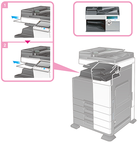 (32)で紙づまりが発生した場合は、下図の左側の手順に従って詰まった用紙を取り除いてください。
