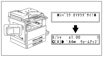 スイッチを【|】に押してください。【スタート】がオレンジ色に点灯し、ディスプレイに「*シバラクオマチクダサイ! *」と表示されます。