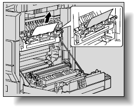定着開閉ガイドを開いて、詰まっている用紙をゆっくり引き抜きます。