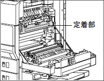 定着部周辺は高温になっています。やけどの原因となりますので、手順内で説明している部分以外には手を触れないでください。高温部分に手などが触れてしまった場合は、すぐに冷たい水で冷やし、医師にご相談ください。