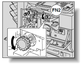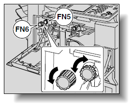 レバー【FN4】を下げ、ダイアル【FN5】またはダイアル【FN6】を回して用紙を取り除きます。