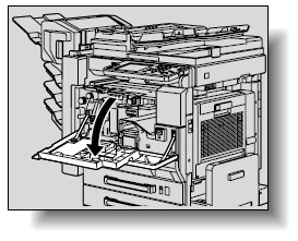 次にジャム処理ドアを開き、用紙を取り除きます。