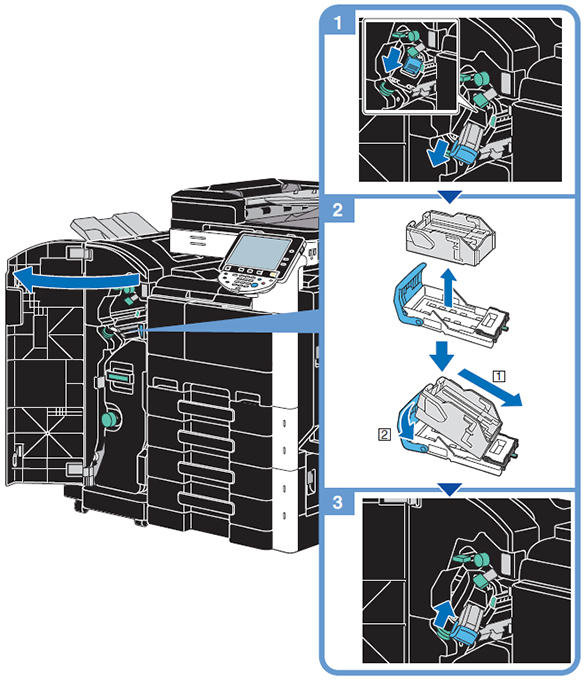 フィニッシャーFS-527のステープルカートリッジの交換方法を教えてください