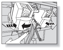 ステープラー1またはステープラー2からステープルホルダーを手前に引き出し、空になったステープルカートリッジを取り出します。
