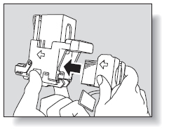 次に、新しいステープルカートリッジをステープラーホルダーにセットして、ステープルケースを元の位置に押し戻してください。