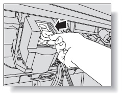ステープルカートリッジの交換は必ずメッセージが表示された後に行ってください。メッセージが表示される前にステープルカートリッジを取り外してしまうと故障の原因となりますので、ご注意ください。