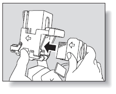 次に、新しいステープルカートリッジをステープルホルダーにセットし、ステープルケースを元の位置に押し戻してください。