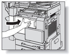 ステープラ移動完了画面の表示を確認してから、フィニッシャーの前ドアを開きます。