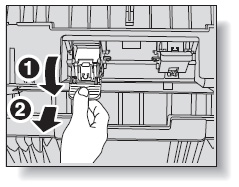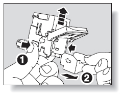 ステープルホルダーを手前に引き出し、空になったサドルステープルカートリッジを取り出します。