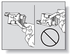 新しいサドルステープルカートリッジをステープルホルダーにセットし、ステープルケースを元の位置に押し戻します。