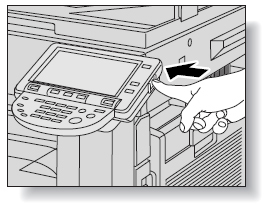 副電源スイッチは、操作パネルの右横に付いています。コピー、プリンター、スキャナーの各機能の動作に対してON/OFF します。OFFにすると節電状態になります。