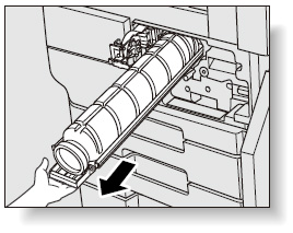 トナーカートリッジホルダーを引き出し、使用済みのトナーカートリッジを手前に持ち上げて取り出します。