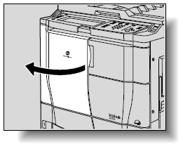 主電源スイッチは、本機の前ドアを開くと左側の中央に付いています。