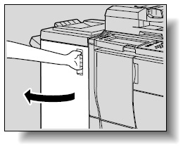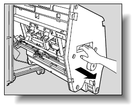 スタッカーユニットをもとの位置に戻し、フィニッシャードアを閉じます。