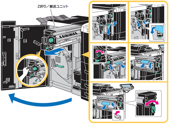 Z折りユニットZU-605で紙づまりが発生した場合の処理方法を教えてください