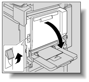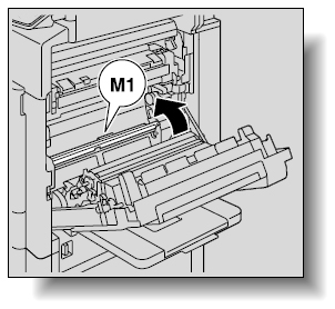 手差しトレイの用紙を取り除いた後、右上ドアを開き、続いて内部ドア【M1】を開いて詰まっている用紙を取り除いてください。