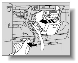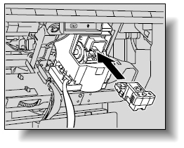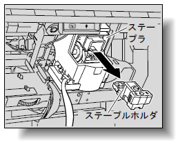 ステープルケース内に残ったステープルカートリッジを取り出し、新しいステープルカートリッジをステープルホルダーにセットします。