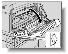 次に、本機の右上ドア解除レバーを引き、右上ドアを開いてください。