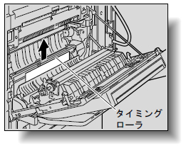 タイミングローラ部につまった用紙をゆっくり引き抜いてください。