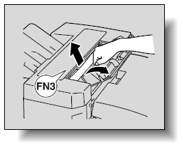 続いて、紙づまり処理レバー【FN3】を開きながら用紙を引き抜いてください。