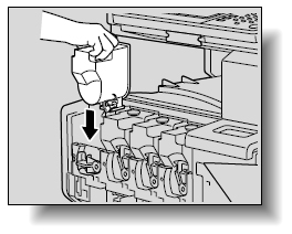 他の色のトナーカートリッジは取り付け位置が異なります。また、他の色のトナーカートリッジは取り付けることができないようになっています。無理に取り付けようとすると故障の原因になりますのでご注意ください。
