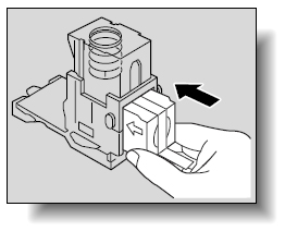 ステープルケース内に残ったステープルカートリッジを取り出し、新しいステープルカートリッジをステープルホルダーにセットしてください。