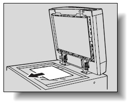 ADFを開いて原稿をゆっくり引き抜きます。原稿ガラス上の原稿を取り除いてからADFを閉じてください。