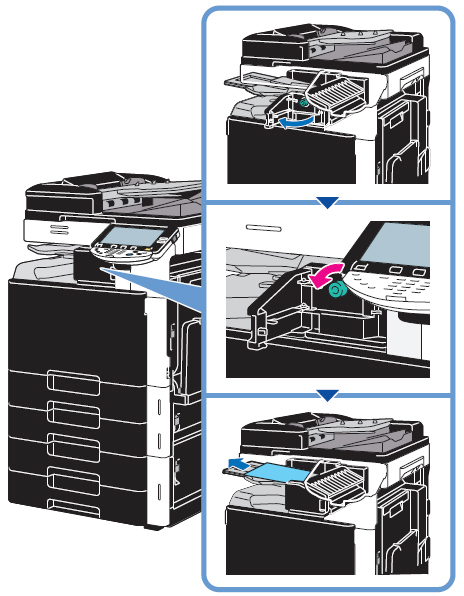 セパレーター部分を開けて、下図の手順に従って詰まった用紙を取り除いてください。