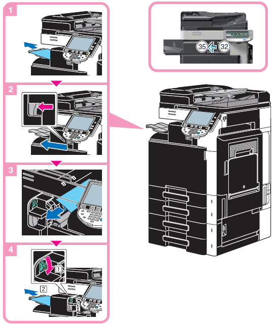 オプションのフィニッシャーFS-529 を装着している場合は、下図の手順で詰まった紙を取り除いてください。