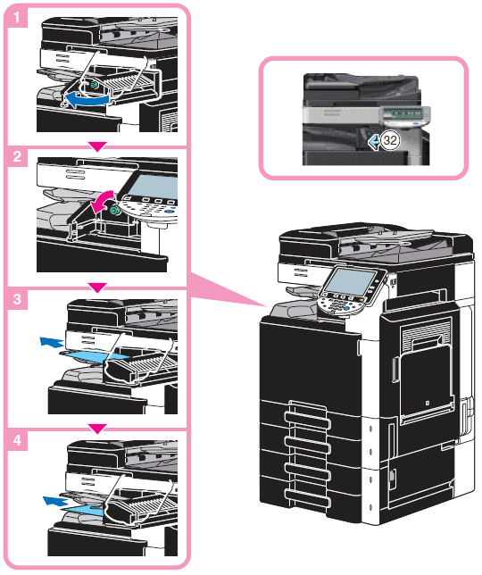 セパレーターを開けて、下図の手順に従って詰まった用紙を取り除いてください。