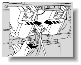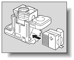 ステープルケース内に残ったステープルカートリッジを取り出し、新しいステープルカートリッジをステープルホルダーにセットします。