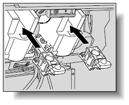 ステープルカートリッジの交換は必ずメッセージが表示された後に行ってください。メッセージが表示される前にステープルカートリッジを取り外してしまうと故障の原因となりますので、ご注意ください。