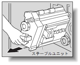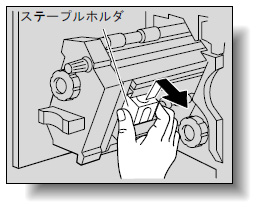 ステープルカートリッジの交換は必ずメッセージが表示された後に行ってください。メッセージが表示される前にステープルカートリッジを取り外してしまうと故障の原因となりますので、ご注意ください。