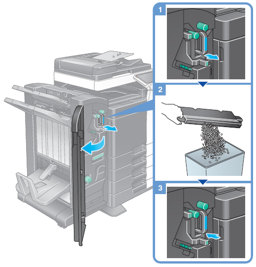 下図の手順に従ってくず入れを外し、中のくずを処理してください。