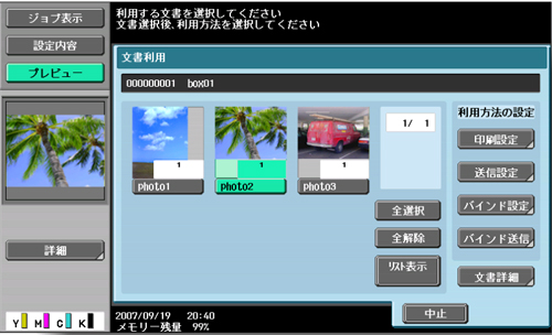 サムネイルで表示した一覧から選択した文書を、プレビューすることも可能です。