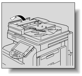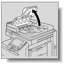 原稿送り装置ADFの原稿給紙トレイに残っている原稿を取り除いた後、左ドアを開け、原稿給紙トレイを止まる位置まで上げて詰まっている用紙を取り除いてください。