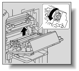 用紙の先端がつかめない場合は、紙づまり処理ダイアルを回して用紙を送り出します。