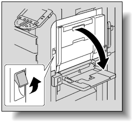 本機の右上ドア解除レバーを引き、右上ドアを開きます。