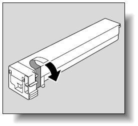新しいトナーカートリッジを用意します。新しいトナーカートリッジは中のトナーが固まっていることがありますので、両端を手で持って上下に5 ~10回程度よく振ってください。