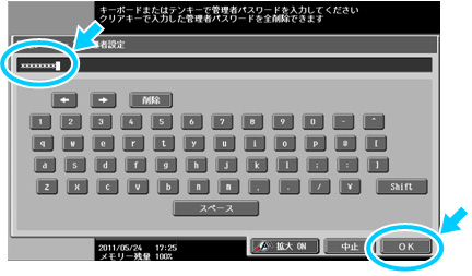 - 管理者パスワードを入力して【OK】を押下します