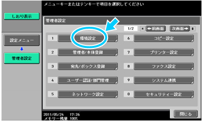 ※操作画面は機種により若干異なります - 【管理者設定】を押下します