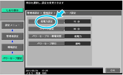 - 【低電力設定】を押下します