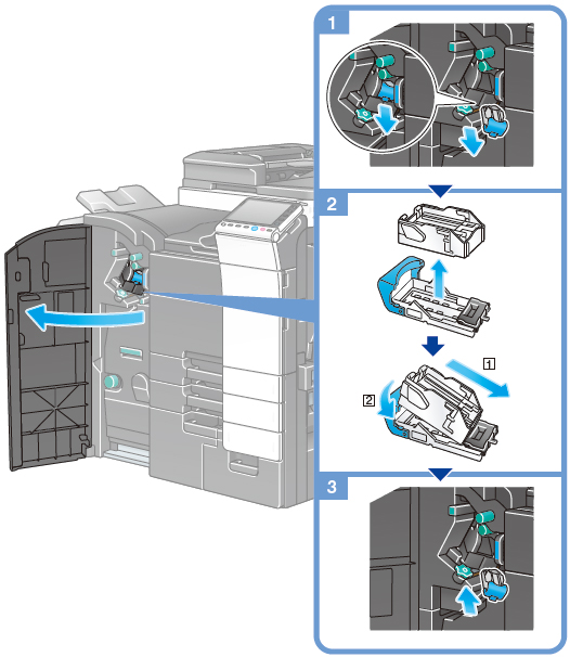 フィニッシャーFS-534のステープルカートリッジの交換方法を教えてください